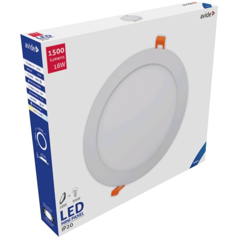 Avide LED Beépíthető Kerek Mennyezeti Lámpa ALU 18W CW 6400K – 1500 lm, 18 W, IP20 védelem. Ideális otthoni és irodai belső terek egységes megvilágítására. Letisztult dizájn és harmonikus fényélmény. Egységes világítás nappaliban, hálóban vagy irodában.