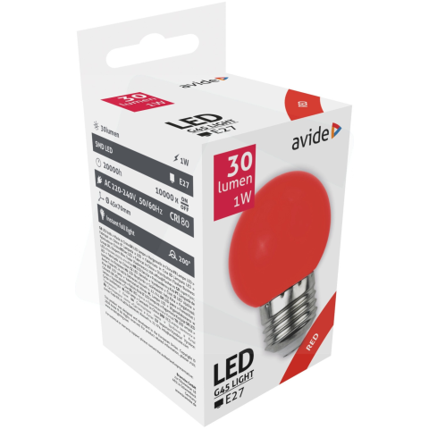 1 kép Avide Dekor LED fényforrás G45 1W E27 Piros