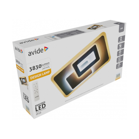 Avide Design Mennyezeti Lámpa Brayden RF Távirányítóval – 3830 lm, 45 W, IP20 védelem. Ideális otthoni és irodai belső terek egységes megvilágítására. Letisztult dizájn és harmonikus fényélmény. Egységes világítás nappaliban, hálóban vagy irodában. Avi