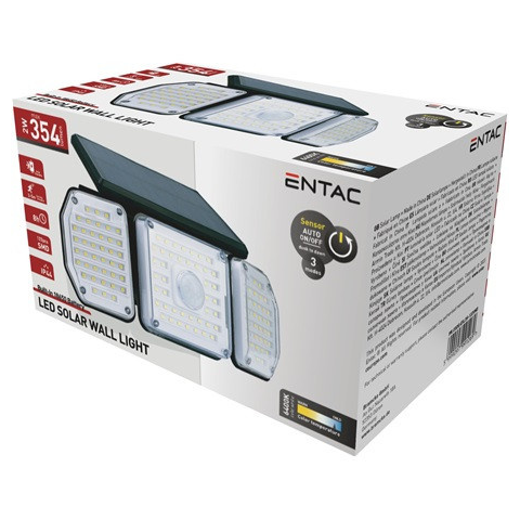 Entac Napelemes Műanyag Fali lámpa 2W SMD 3 fej mozgásérzékelővel – 354 lm, 2 W, IP44 védelem. Ideális otthoni és irodai belső terek egységes megvilágítására. Letisztult dizájn és harmonikus fényélmény. Egységes világítás nappaliban, hálóban vagy irodában