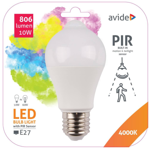 1 kép Avide Izzó Smart LED Globe A60 10W NW 4000K PIR mozgásérzékelővel, Avide