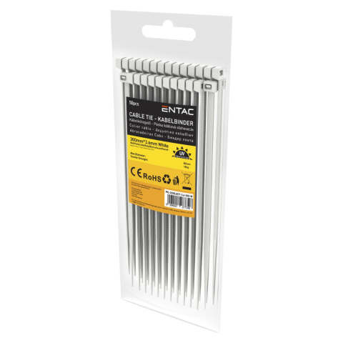 Entac Kábelkötegelő 3.6mmx300mm Fehér – Ideális kábelek rendezésére és rögzítésére, barkács- és professzionális felhasználásra. Gyors és biztonságos rögzítést biztosít. Rendezett kábelvezetéshez, átlátható munkaterülethez. Entac Kábelkötegelő 3.6mmx300