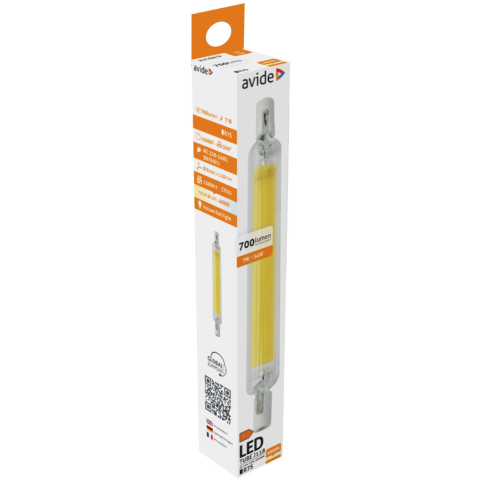 Avide LED 7W R7S 8x118mm NW 4000K – 700 lm, 7 W, IP20 védelem. Ideális csillárokban, falikarokban, asztali és éjjeli lámpákban. Szabályozható fényerejű változatban is elérhető. Egyszerű csere, széles körű kompatibilitás. Avide LED 7W R7S 8x118mm NW 400