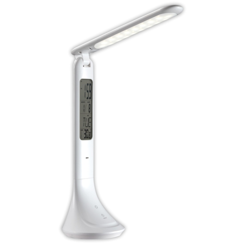 Biztosítson fényt íróasztalán az Avide 5W-os kijelzős asztalilámpájával. A lámpa egyszerű, minimalista kialakításával, igazán modern hatást biztosít helyiségeinek. A beépített akkumulátornak köszönhetően akár 4 órán át használhatjuk töltés nélkül. A termék elérhető fehér, illetve fekete színekben Főbb jellemzők: 3 lépésben állítható fényerő Naptárfunkció Óra és ébresztőóra Hőmérséklet kijelzés 3 lépéses fényerőszabályzást az érint