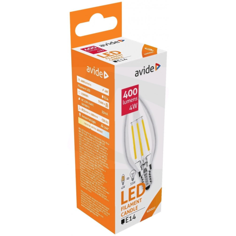 1 kép Avide LED izzó, Filament Candle 4W E14 360° NW 4000K, AVIDE