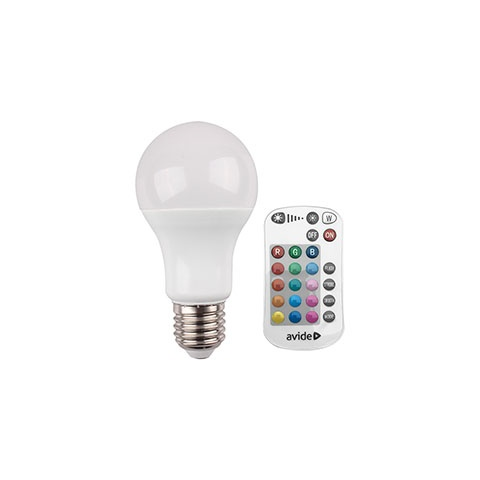 Avide LED lámpa E27 (9.7W/200°) Körte - RGB+W+IR távirányítható