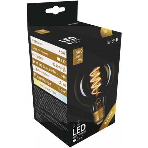 Avide LED Soft Filament G80 5W E27 360° EW 2700K