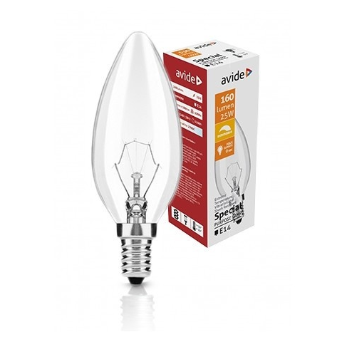 Speciális Izzó C35 25W E14 WW (Avide hőálló) – 160 lm, 25 W, IP20 védelem. Ideális csillárokban, falikarokban, asztali és éjjeli lámpákban. Szabályozható fényerejű változatban is elérhető. Egyszerű csere, széles körű kompatibilitás. Speciális Izzó C35