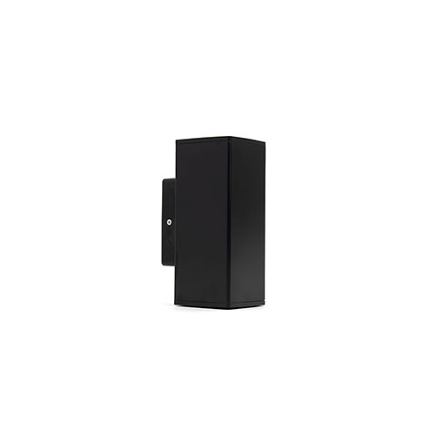 IP65-ös kültéri oldalfali lámpatest GU10 foglalattal: szögletes fali lámpa, amely két irányba világít. A felfelé és lefelé világító lámpatesttel esztétikusan kiemelhetjük a homlokzat struktúráját, burkolatát is, de a közlekedéshez használt fal melletti útvonalak megvilágítására is alkalmas.
