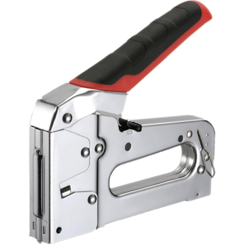 Kapcsokkal működő tűzőgép, ellenálló, időtálló, könnyen működtethető. Ideális álmennyezetek, szigetelő anyagok, műanyag fóliák felfogására, padlószőnyegek rögzítéséhez, kárpitozási munkálatokhoz. 1,2mm-es szál, 140 típusú, 6-14mm-es kapcsokkal.