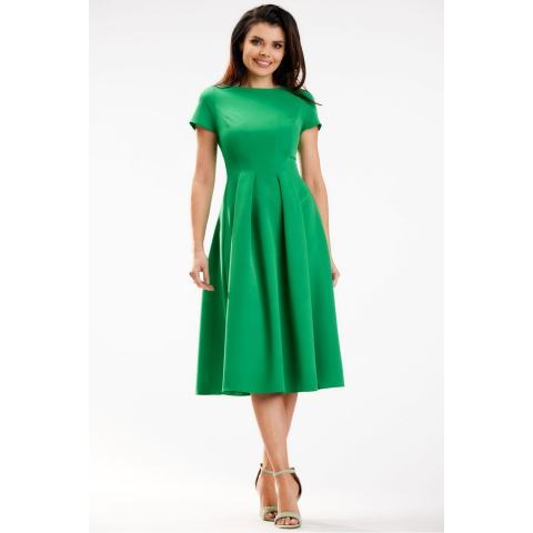 Hétköznapi Ruha Model 178673 Awama MM-178673. Színe: ZöldMidi ruha rövid ujjakkal. Csónakos nyakkivágás. Hátul fedett cipzárral záródik. A ruha gyönyörűen formálja a sziluettet és kiemeli az előnyöket, miközben elrejti a gyengeségeket. Lengyelországban tervezték és varrták. Spandex 5 % Poliészter 95 % MéretHosszCsípőbőségMellbőségDerékbőség L117 cm128 cm96 cm78 cmM116 cm124 cm92 cm74 cmS115 cm120 cm88 cm70 cmXL118 cm