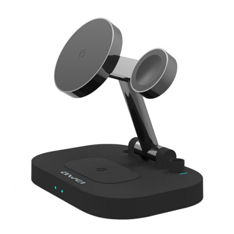 Awei asztali töltőállvány 4in1 (15W, wireless, gyorstöltő, MagSafe, Apple Watch töltő) FEKETE