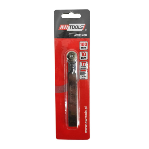 Hézagmérő készlet 17 darabos, 0,02-1,0mm//Awtools hossz: 100 mmszélesség: 10 mmanyag: kiváló rugóacélmérési tartomány: 0.02-0.03-0.04-0.05-0.06-0.07-0.08-0.09-0.10-0.15-0.20-0.25-0.30-0.40-0.50-0.75-1.00mmEAN kód: 5903678604615