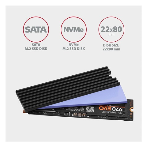 AXAGON CLR-M2L3 alumínium passzív hűtő M.2 SSD-hez (CLR-M2L3)