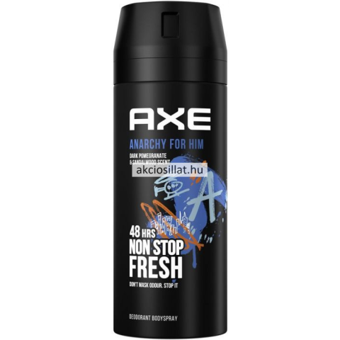 AXE Anarchy for Him dezodor 150 ml – Lázadó illatélmény a magabiztos mindennapokhoz Tapasztald meg az AXE Anarchy for Him dezodor frissítő és karakteres illatát, amely egyedülálló módon ötvözi a sötét gránátalma gyümölcsös jegyeit a meleg szantálfa földes