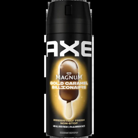 Axe Gold Caramel Billionaire dezodor, amely a Magnum jégkrém inspirálásával készült. Ez a vonzó illat a csábító karamell és csokoládé jegyeivel indul, amelyet a szantálfa, kardamom és fahéj gazdagít. Az Axe Gold Caramel Billionaire segít, hogy akár 48 órán át friss maradhass, így ideális választás a nap folyamán.