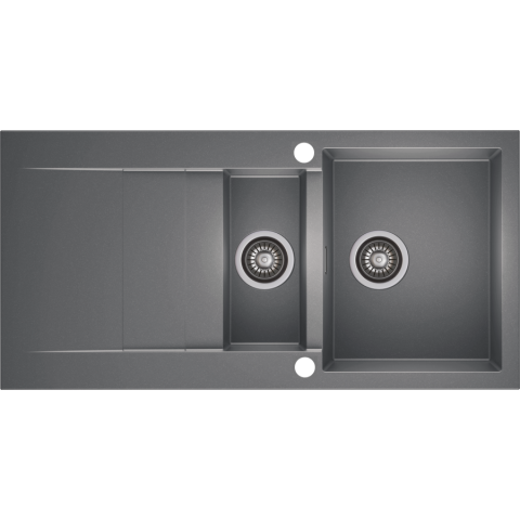 Axis CASCADA 150  másfél medencés gránit mosogató automata dugóemelő, szifonnal, szürke, beépíthető mosogatótálca 1 kép