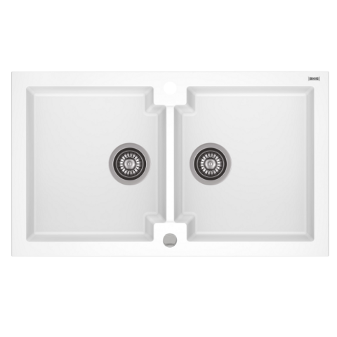 1 kép Axis HONEST 160 kétmedencés gránit mosogató automata dugóemelő, szifonnal, fehér, beépíthető