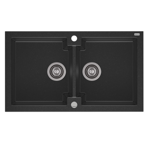 1 kép Axis HONEST 160 kétmedencés gránit mosogató automata dugóemelő, szifonnal, fekete, beépíthető