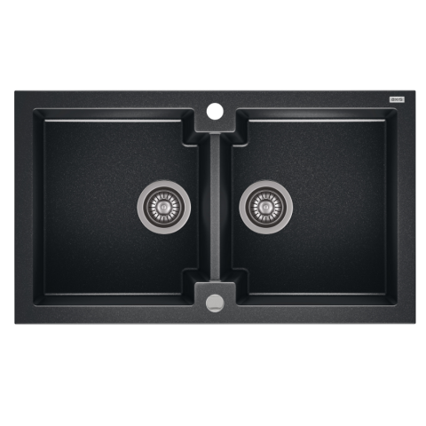 1 kép Axis HONEST 160 kétmedencés gránit mosogató automata dugóemelő, szifonnal, fekete-szemcsés fényes, beépíthető