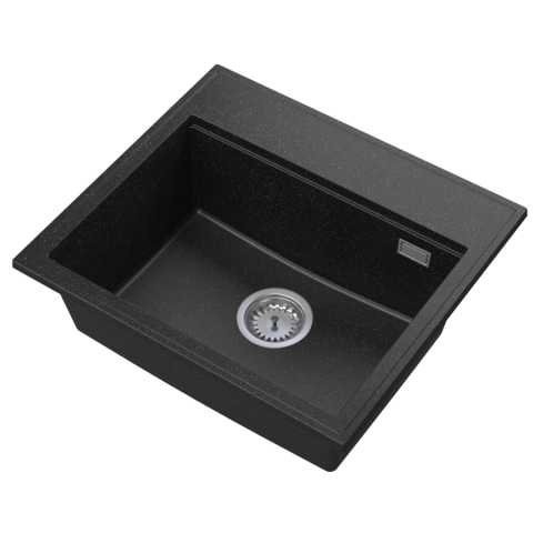 1 kép Axis Modern 55 gránit mosogató automata dugóemelő, szifonnal, fekete-szemcsés, beépíthető
