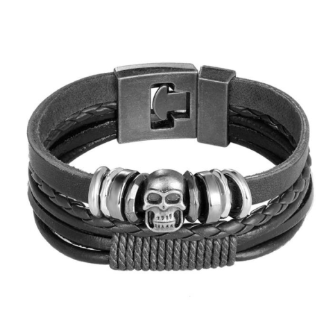 AZIZ Koponya motívumos nemesacél és műbőr férfi karkötő 2. karkötő 1 kép