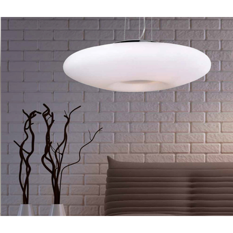 Ez a függesztett lámpa egyedi dizájnjával és szórt fényével varázslatos légkört teremt. Kiválóan alkalmas étkezőkbe vagy nappalikba, ahol stílusos világítással szeretnénk fokozni a hangulatot. Modern vonalai révén könnyen beilleszthető bármilyen enteriőrb..