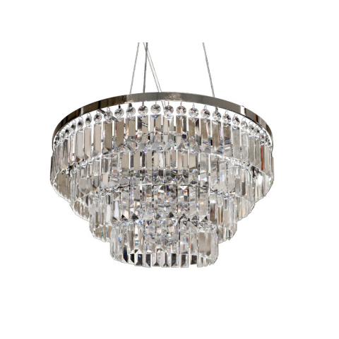 Ez a kristály függesztett lámpa lenyűgöző eleganciát és stílust kölcsönöz bármely helyiségnek. A kristályok finom részletei tökéletesen szórják a fényt, elegáns és fényűző légkört teremtve. Ideális választás nappalikba, étkezőkbe vagy előkelőbb helyiségek..