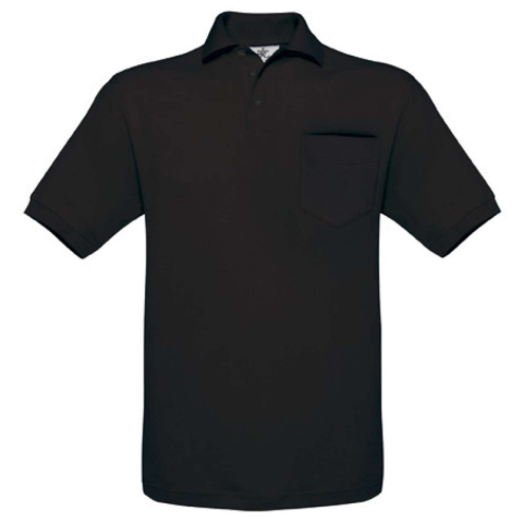 1 kép B&C BCPU415 mellzsebes rövid ujjú galléros piké férfi póló, Black-M