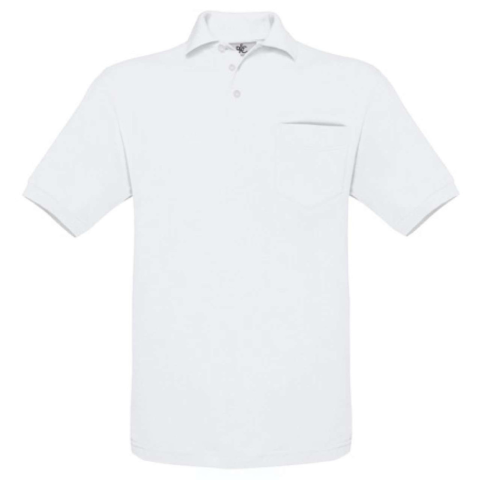 1 kép B&C BCPU415 mellzsebes rövid ujjú galléros piké férfi póló, White-M