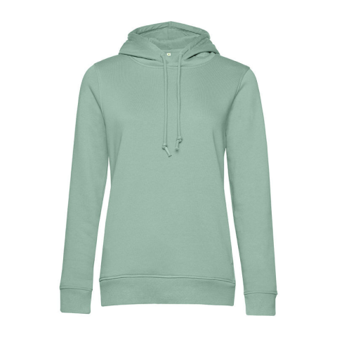 B&C 80% gyűrűs fonású, fenntartható organikus pamut - 20 % poliészterrel. Egyenes fazonú, kétoldali zsebekkel ellátott, kapucnis női pulóver.280 g/m²