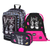 Stílusos és praktikus iskolai készlet, amely tartalmazza a hátizsákot, a tolltartót és a modern cipőmintás tasakot. Tartós és vízálló anyagokból készült, a biztonságos és kényelmes használat érdekében.