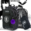 Baagl iskolatáska, hátizsák SZETT - Wednesday Nevermore Az iskolatáska szett része az ergonomikus iskolatáska, az ovális tolltartó és a tornazsák. A minőségi iskolatáska szürke-fekete csíkos és pókháló mintás, stílusosan a Wednesday Addams rajongók...