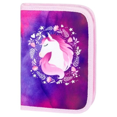 Tolltartó - kihajtható fülek hurkokkal, egyszintes kialakítás, akasztófüllel, méretei 3 × 15 × 20 cm (h × szé × ma), fehér, lila és rózsaszín kivitel, állat motívum Lepd meg a gyermeked egy új tolltartóval! Kislányoknak tervezték, 6 éves kortól. Méretei: 15 × 20 × 3 cm.A BAAGL Kétoldalas, kihajtható iskolai tolltartó – Ló főbb jellemzőiEz a tolltartó lányoknak ké