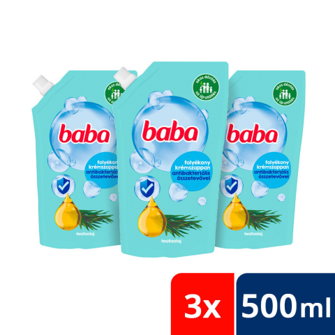 Baba folyékony szappan utántöltő antibakteriális teafaolajjal 3x500 ml tisztító- és takarítószer, higiénia termékleírás