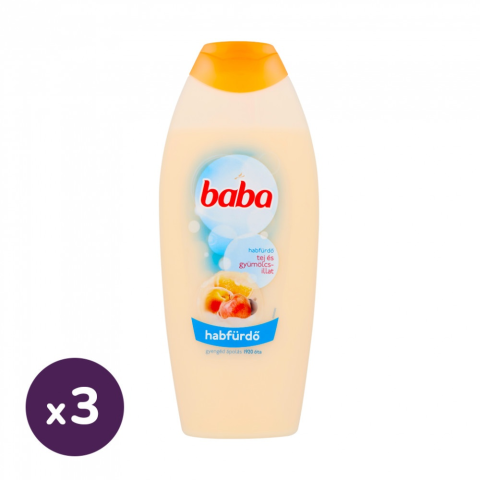 Baba habfürdő tej és gyümölcs illattal 3x750 ml Élvezd a zuhanyzás relaxáló pillanatait a Baba tej és gyümölcsillatú tusfürdővel. Ez a tusfürdő tejet tartalmaz, mely ápoló tulajdonságáról ismert. A narancs, őszibarack, alma és feketeribizli illatharm