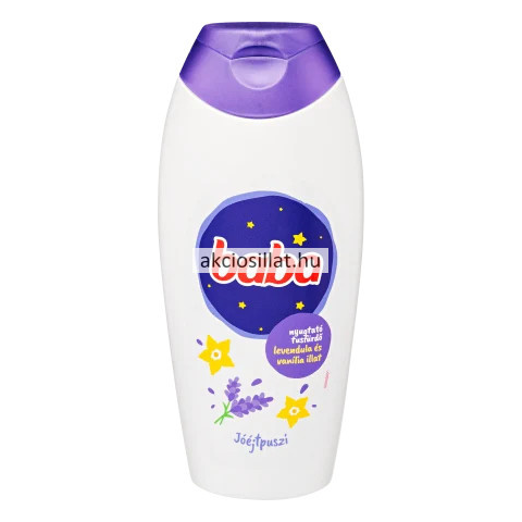 Baba Jóéjtpuszi Levendula és Vanília illatú tusfürdő 400ml Éld át a teljes testi és lelki kikapcsolódást a Baba Jóéjtpuszi tusfürdővel, amely a levendula és vanília harmonikus illatával öleli körül az egész családot. A meleg víz nyugtató erejével komb
