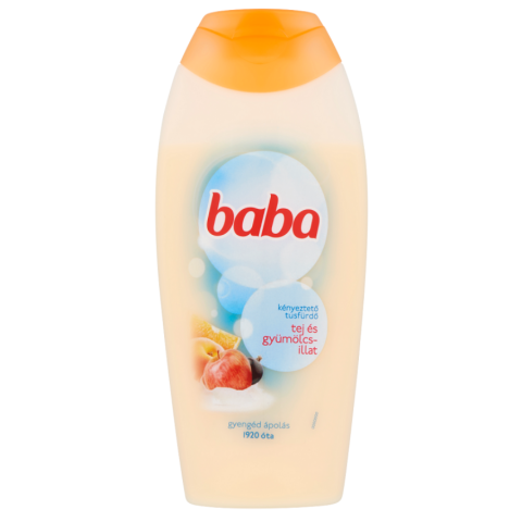 Élvezze a zuhanyzás relaxáló pillanatait a Baba tej és gyümölcsillatú tusfürdővel. Ez a tusfürdő tejet tartalmaz, mely ápoló tulajdonságáról ismert. A narancs, őszibarack, alma és feketeribizli illatharmóniája friss, gyümölcsös fuvallattal kényezteti érzékeinket. Használatával jól indulhat a napunk, és egy hosszú nap után is üdítő frissességet nyújt az egész csa