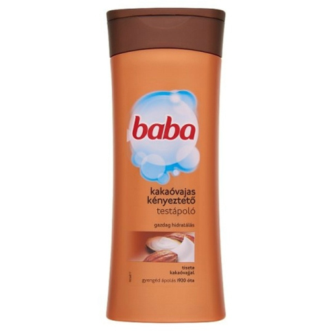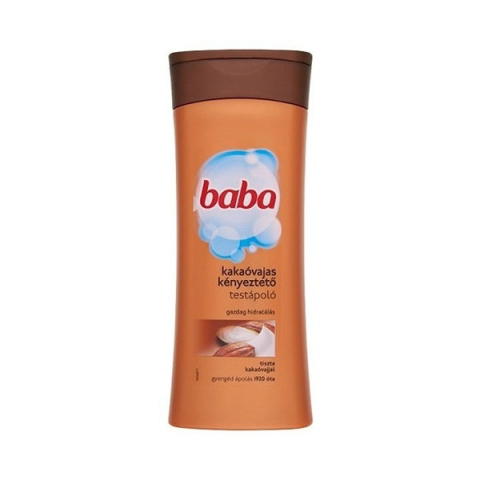 A Baba kakaóvajas kényeztető testápoló kihozza a bőröd természetes ragyogását, bársonyosan puhává és finom illatúvá teszi. Tiszta kakaóvaj hozzáadásával készült, mely ősi kincs hidratáló tulajdonsággal és édes illattal. Használata számodra és a bőröd számára is a legkellemesebb és legkényeztetőbb pillanata lesz a napnak.
