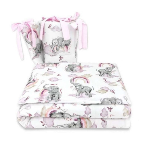 1 kép Babastar BS Ágyneműgarnitúra 3 részes - Szivárványos Elefánt rózsaszín