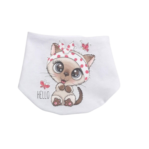 1 kép Babastar Pamut baba nyálkendő mintás - Fehér - "Hello" Cica Pöttyös fejpánttal