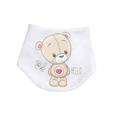 1 kép Babastar Pamut baba nyálkendő mintás - Fehér - "Hello" Maci Szívecskével