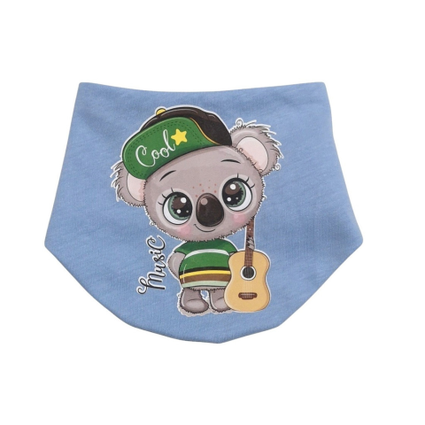 1 kép Babastar Pamut baba nyálkendő mintás - Kék - "Music" Koala gitárral