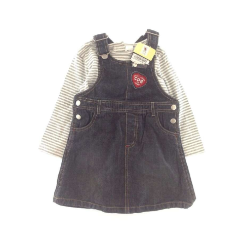 Baby Club Baby Club kantáros farmerruha csíkos felsővel - 86