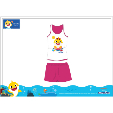 Baby Shark nyári gyerek ujjatlan rövid pizsama, gumírozott derékrésszel. Anyaga: 100% pamut Méret: 110 cm A termék díszdobozban kapható.