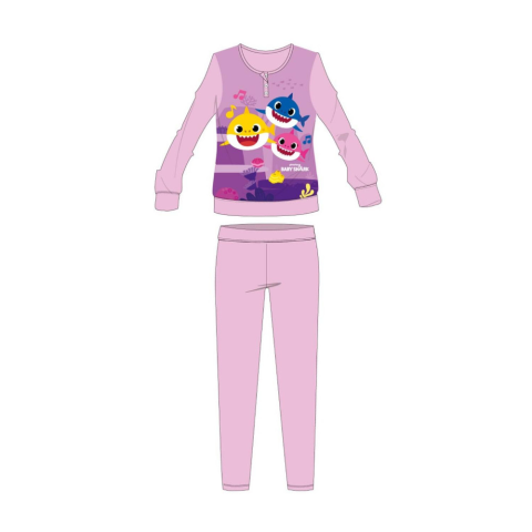 Baby Shark téli pizsama gyerekeknek 100% pamut alapanyagból. Kényelmes bőrbarát viselet. Gombos nyakkialakítással, gumírozott derékrésszel, egyenes, szűkített szárral, Baby Shark mintával. Méret: 104 Díszdobozban szállítjuk.