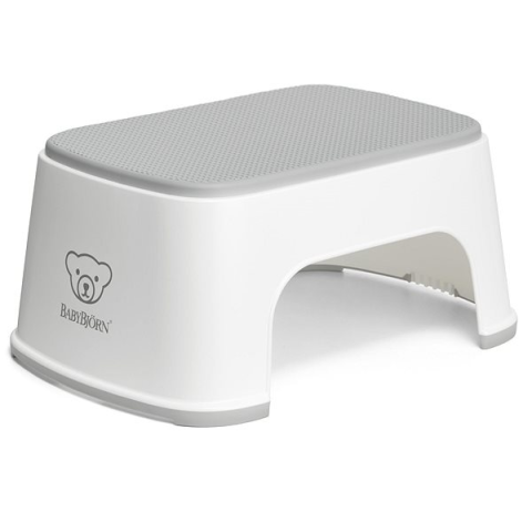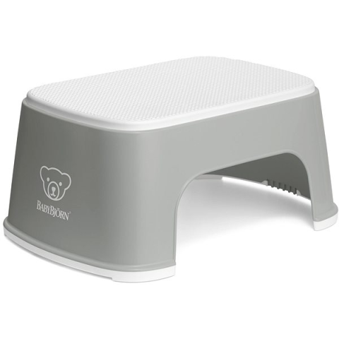 Gyerek fellépő - max. terhelhetősége 40 kg, teljes magassága 157 mm, 34,5 cm széles, csúszásgátlós és gyermekek számára kialakított, anyaga: polipropilén, színe: szürke A BabyBjörn fellépővel a gyermeked biztonságosan és kényelmesen férhet hozzá a mosdóhoz vagy a WC-hez. A fellépő alján található gumicsík gondoskodik arról, hogy a fellépő egyáltalán ne mozduljon el,