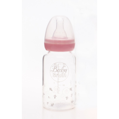 1 kép BABYBRUIN Hőálló üveg cumisüveg, szilikon etetőcumival, cseppmentes kupakkal 120 ml - rózsaszín