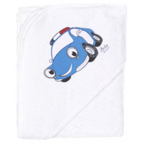 1 kép BABYBRUIN Kapucnis frottír fürdőlepedő, kifogó 75x90 cm- Autós fehér Nr2