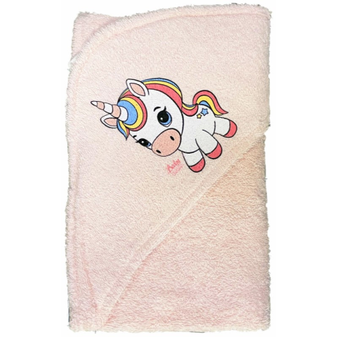1 kép BABYBRUIN Kapucnis frottír fürdőlepedő, kifogó 75x90 cm - Unikornis rózsaszín